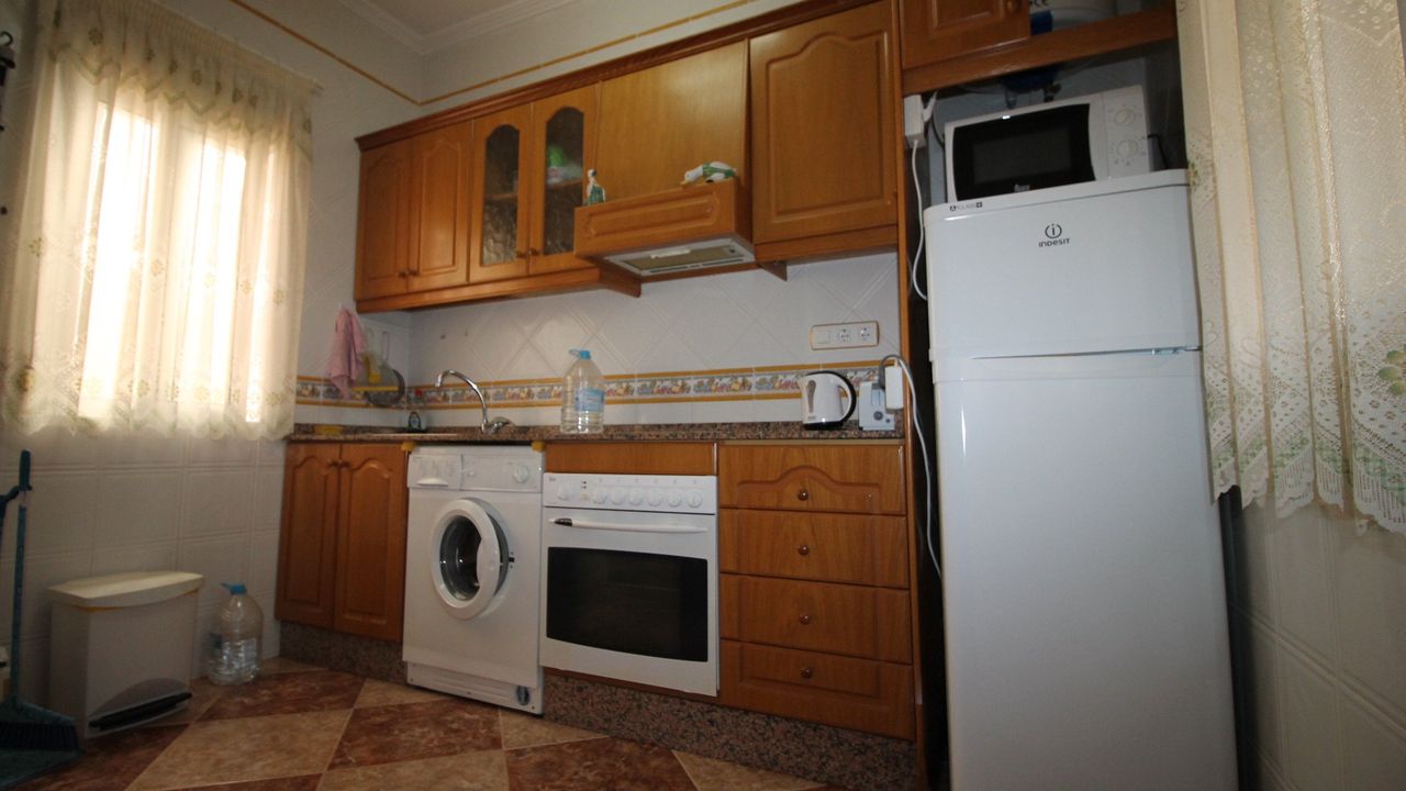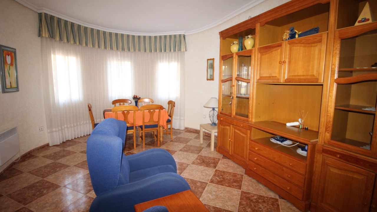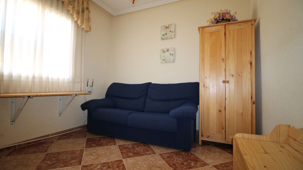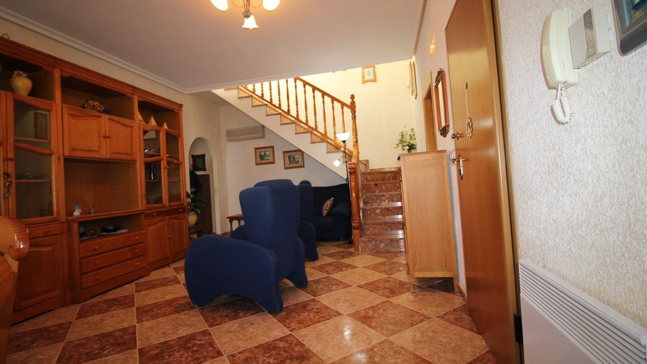 Independent Villa in the private urbanization Los Huertos II (Los Altos/Torrevieja/Alicante), consists of 3 bedrooms, one of them on the ground floor, 2 bathrooms, living room with large windows, independent kitchen with large gallery, barbecue, two terraces. Plot of 400 m2 with private parking. The house is in excellent condition, does not require repair, is sold with appliances and furniture. The house has satellite TV and high-speed Internet. All with views to the southeast, community pool, all services next door, shops, pharmacy, school, hospital and everything you need for daily life