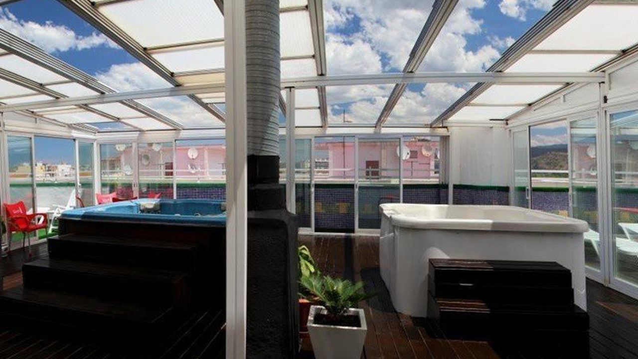 На крыше здания находятся открытый бассейн, солярий, джакузи с сауной и фитнесс зал.