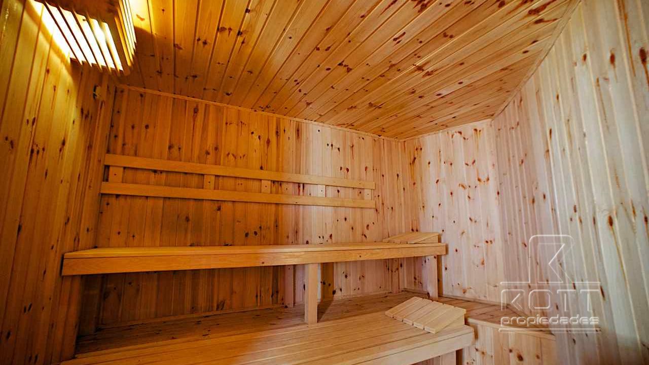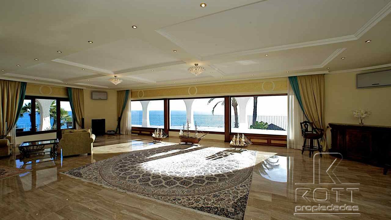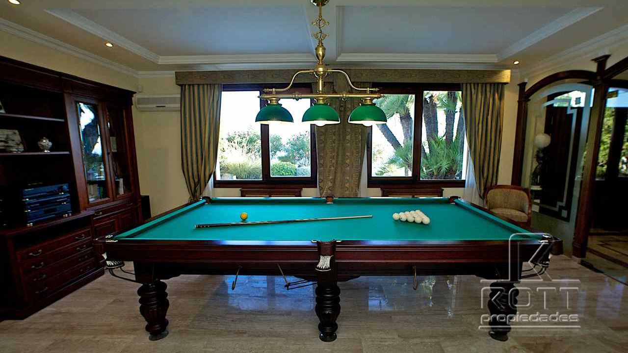 На первом этаже виллы есть сауна, джакузи, кладовая, гостиная, бильярдная 40 м2, гостиная 102 м2, столовая 40 м2, кухня 24 м2, прачечная 14 м2., подвал 74 м2, 30 м2 гостевая спальня и гардероб. Кроме того, есть тренажерный зал, летняя кухня с камином и 150 м2 открытой террасой с барбекю и дровяной печью. Существует еще одна терраса 118 м2 с видом на море.