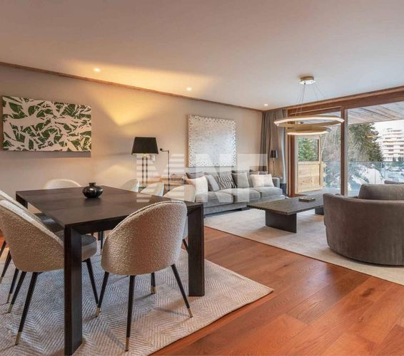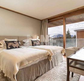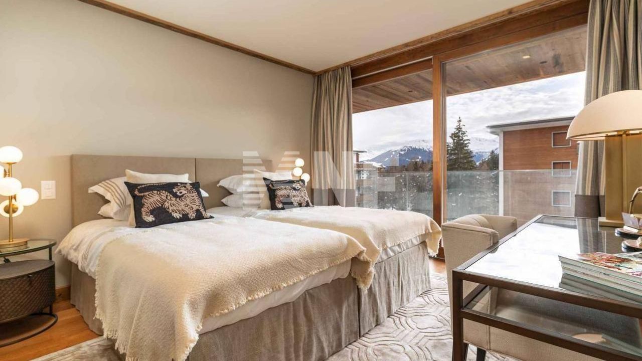 Эти апартаменты расположены в новом комплексе в Crans-Montana. Проект возник в результате трансформации старого отеля в роскошный комплекс зданий, состоящий из 15 квартир. Это идеально расположено в центре города Кран, недалеко от курорта и подъемников. Большие окна предлагают захватывающую панораму, просторная планировка дает проект современный вид, а массивные материалы и теплые текстуры, используемые в своих интерьерах, сохраняют горный стиль и дополняют современный дизайн здания. Для жителей данной резиденции доступна полная инфраструктура курорта: полностью оборудованный спа-центр, тренажерный зал, массажный зал, баня, сауна, джакузи и большой бассейн с подогревом. В проекте также есть парковка на 25 автомобилей и частный сад. Площадь этих квартир, расположенных на 3 этаже комплекса, составляет 177 кв. м. Их жилое пространство состоит из кухни, превращаясь в столовую и гостиную, а также 3 спальни. Кроме того, эта квартира имеет длинный балкон с великолепным видом на горы.