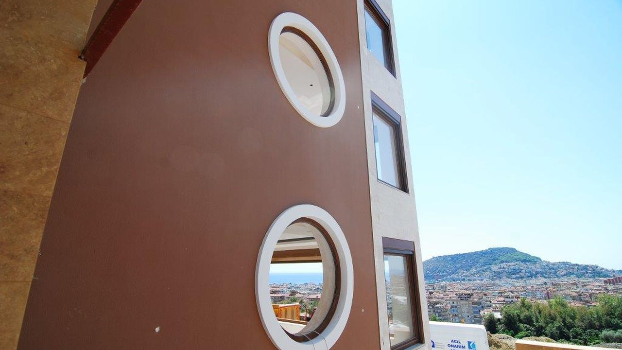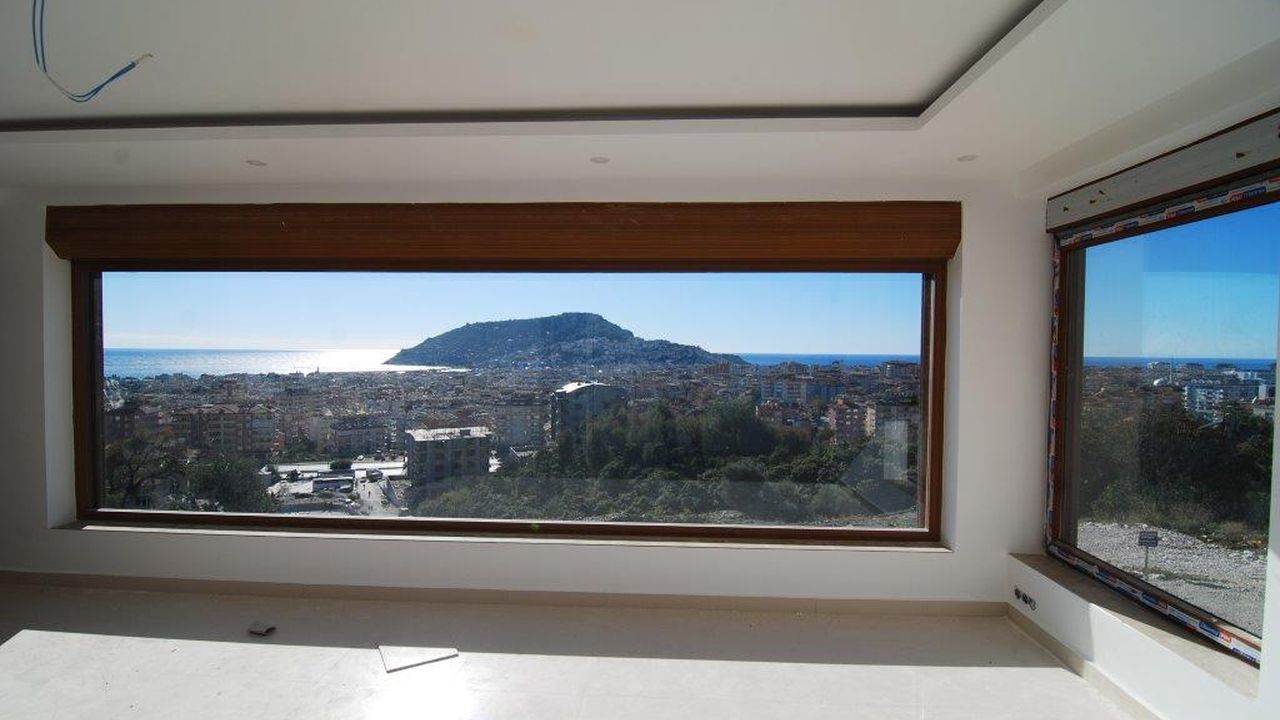 Дуплекс, общей площадью 150 м2, имеет панорамный вид на горы, море и саму Аланию. Гостиная с панорамными окнами на всю высоту стены, отдельная кухня, холл, 3 спальни, 2 ванных комнаты, просторный балкон. Есть общий бассейн.