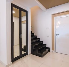 Квартира-пентхаус, расположенная на 4 и 5 этажах планировки 2 + 1 (2 спальни, гостиная и кухня совмещены, 2 санузела и душевая кабина, балконы). Также доступен к покупке пентхаус на 4-5 этажах планировки 3+1, 240 м2 за 309 000 евро. Квартира с полной высококачественной чистовой отделкой, сантехникой, кухонным гарнитуром