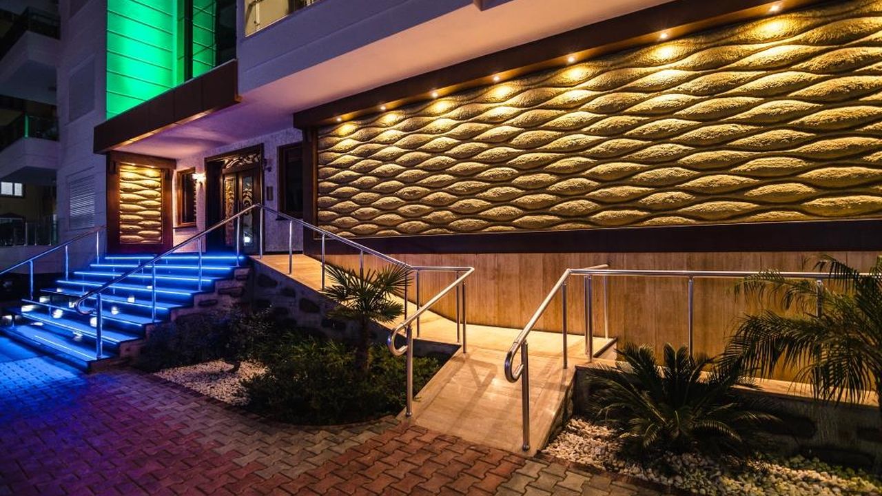 Жилой комплекс состоит из одного одиннадцатиэтажного блока, в котором расположено 22 апартамента 1+1, 20 апартаментов 2+1, 2 пентхауса 2+1 и 2 пентхауса 3+1. На каждом этаже расположено по 4 апартамента. Коммерческое помещение находится на цокольном этаже. Инфраструктура жилого комплекса: - Плавательный бассейн с аква парком - Детская площадка - Беседка - Парковка - Двойной лифт - Централизованное спутниковое телевидение - Электро генератор - Видео домофон - Пожарная лестница - Гранитные лестницы - Сауна - Тренажерный зал - Квартира консьержа - Интернет - Пластиковые окна и двери на балкон, а также система затвора - В каждом пентхаусе установлена сауна