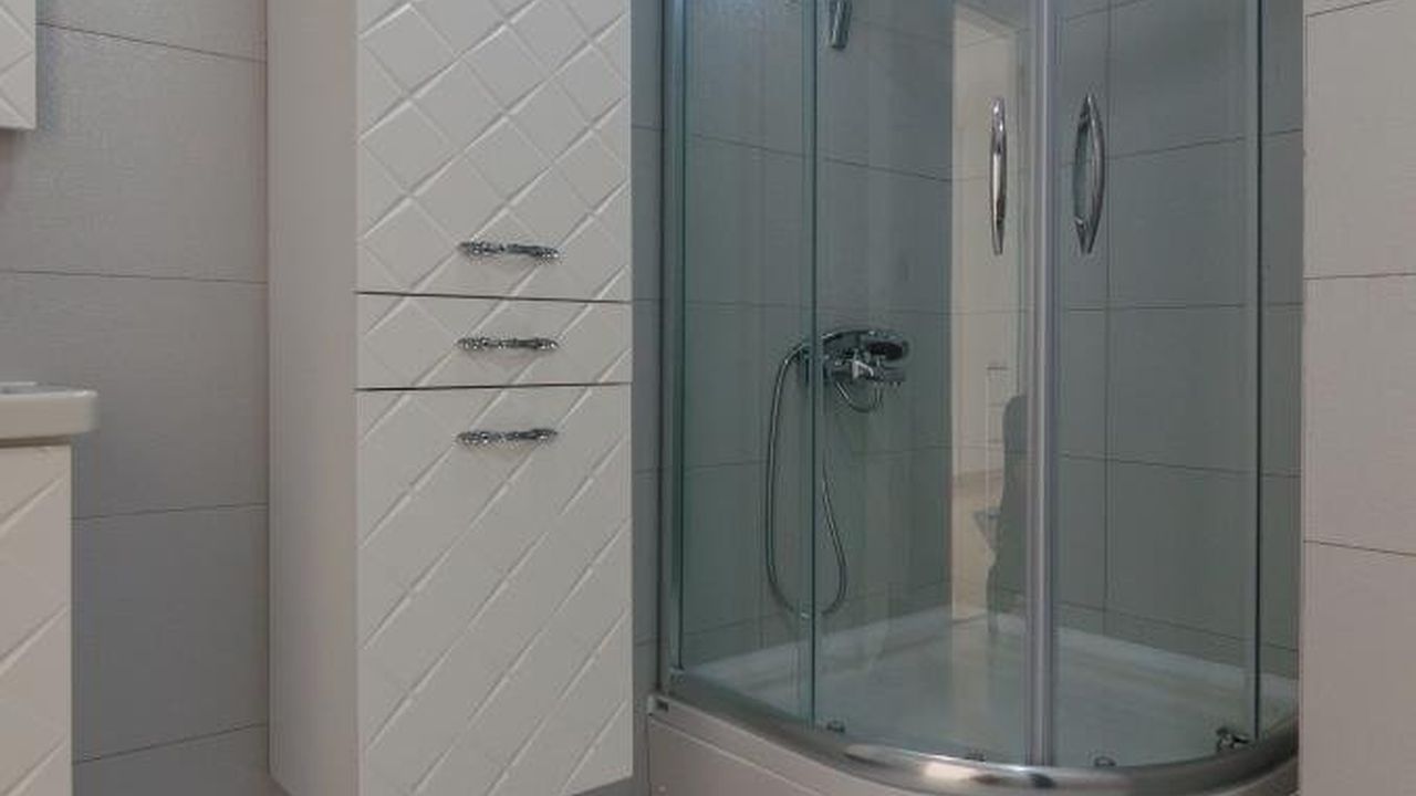 - в ванной комнате умывальники фирмы Hilton, унитаз, душевая кабина, встроенный шкафчик