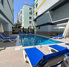 Комплекс расположен всего в 300 метрах от моря на границе двух популярных районов Алании – Махмутлара и Каргыджака.