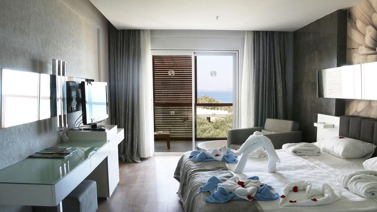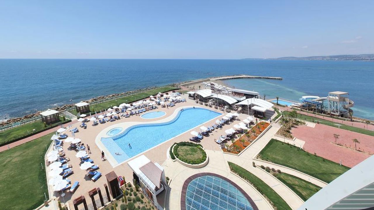 Вам предоставляется возможность отдохнуть в отеле, построенном в необычном архитектурном стиле и расположенном в обширной садовой зоне на великолепном полуострове, окруженнoм золотыми песчаными пляжами и омываемом бирюзовыми водами Средиземного моря. Ждем Вас для того, чтобы Вы провели незабываемые моменты своей жизни.