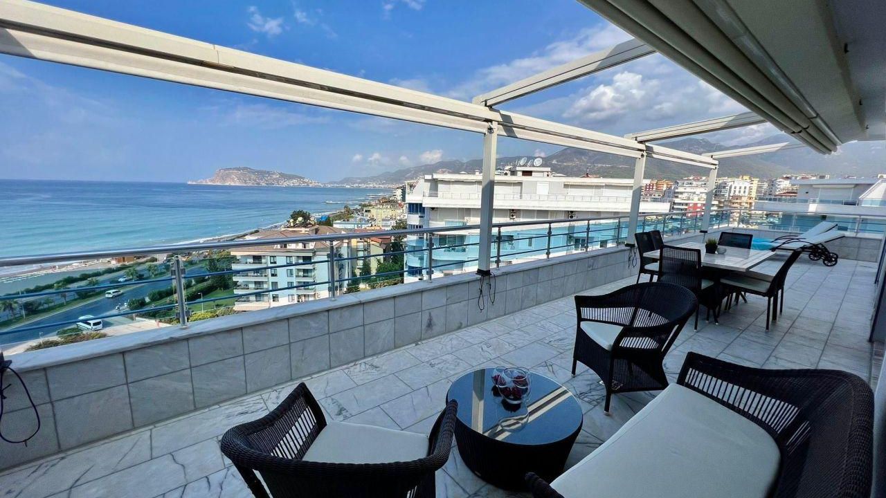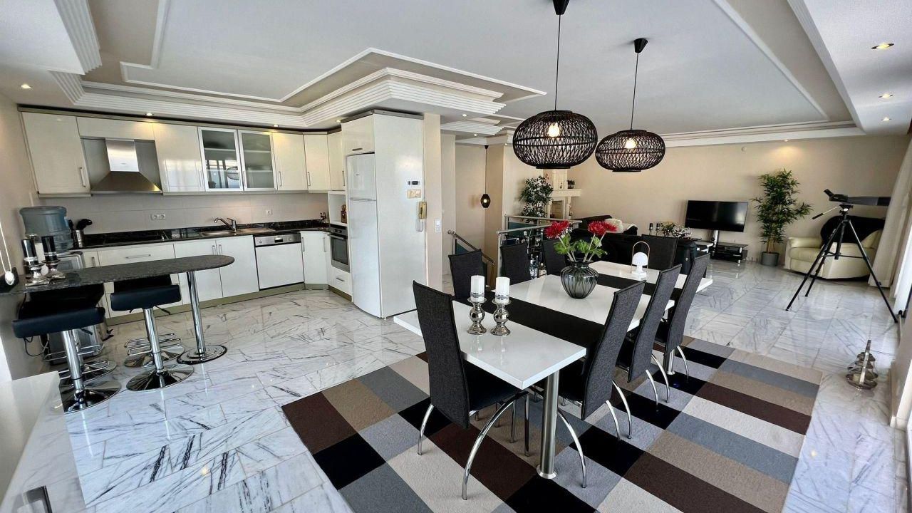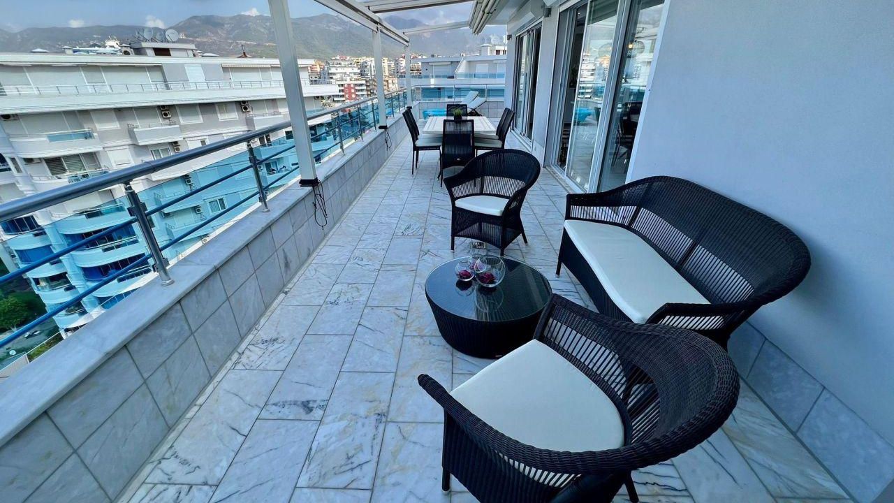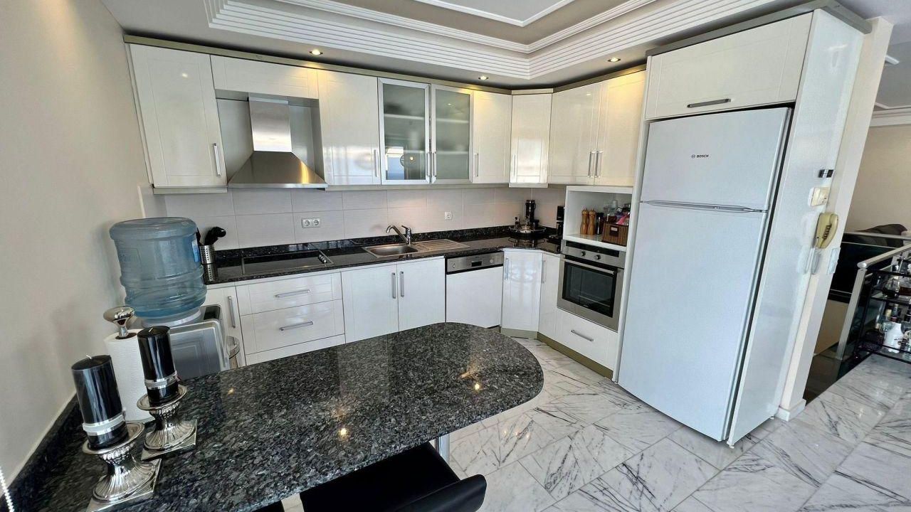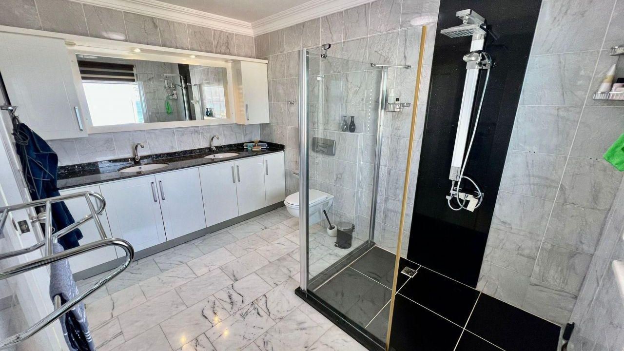 Есть 2 балкона и 1 большая терраса. Дом построен в 2007 году. На полу есть мраморная плитка, все материалы высокого качества. Мастер-спальня с гардеробной, ванная комната / туалет, балкон с бассейном и видом на море и замок Алании.