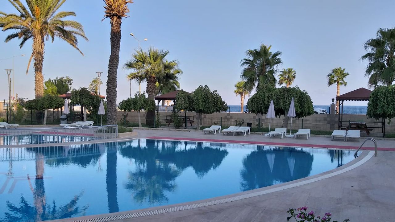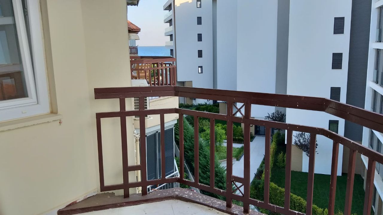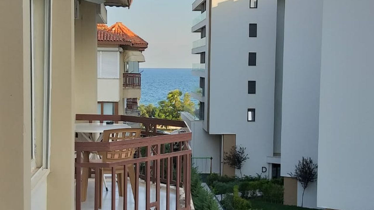Квартира на знаменитой набережной Коньялты с видом на море в престижном ситэ,,Gizem sitesi " на 4-ом этажэ, с балкона открывается великолепный вид на море с одной стороны и на горы с другой стороны, в квартире имеются кондиционеры, отопление, проведён газ, в комплексе имеются генератор, бассейн, ухоженная зеленая территория, парк, магазин, охрана, привратник, парковка открытая и закрытая