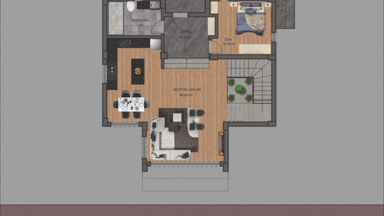 Помимо близости к центрам, находясь в центре таких проектов, как новая автовокзал и легкое метро выделяются как преимущества расположения. Средиземное море находится в 7 км. С другой стороны, расстояние от первого в Турции проекта цифровой виллы до Konyaalti Beach находится всего в 15 км. На территории охраняемого комплекса есть абсолютно все для комфортной жизни и даже амфитеатр с концертными площадками.