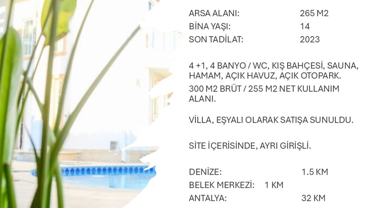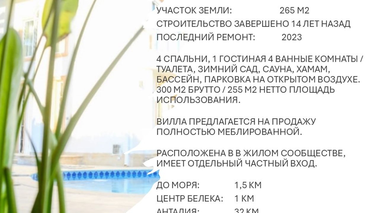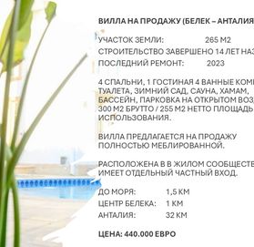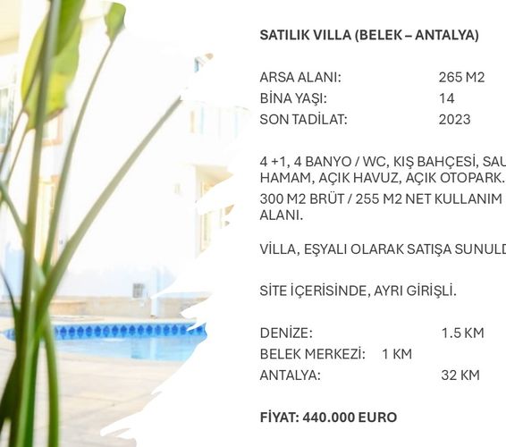 ПРОДАЕТСЯ ВИЛЛА (БЕЛЕК - АНТАЛИЯ)