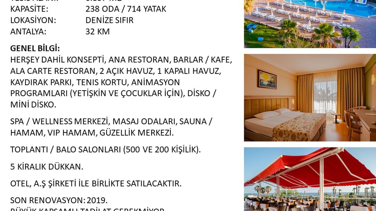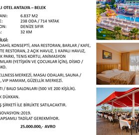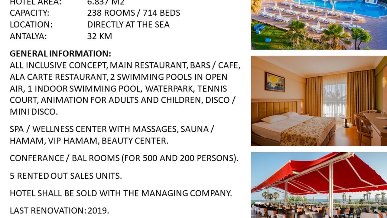 Турция. Продается 5-звездочный отель в Анталии - Белек.