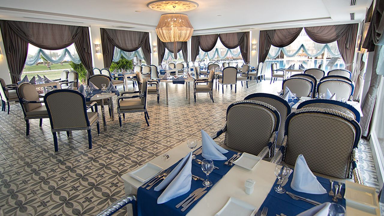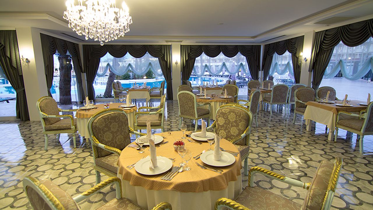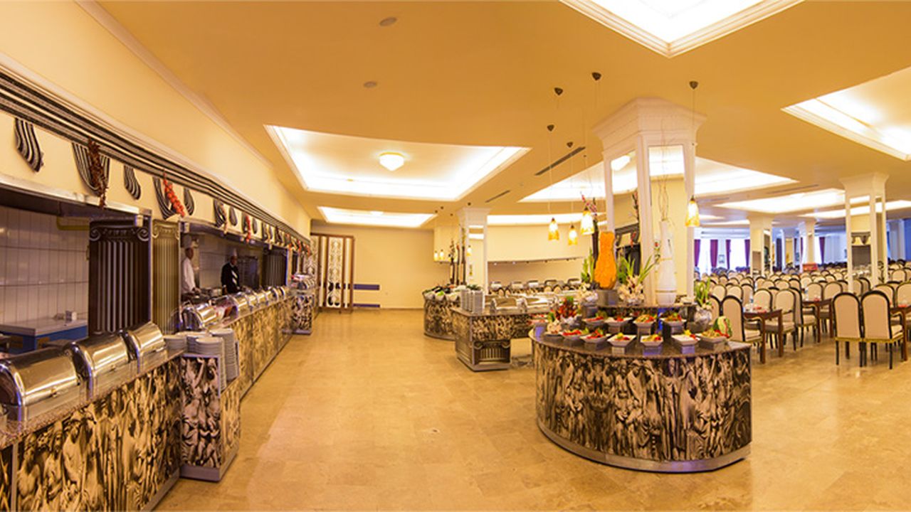 Семейный и взрослый ресторан на 850 мест с кондиционером, ресторан на террасе на 400 мест, VIP-ресторан на открытом воздухе и в помещении с обслуживанием на 350 мест. Блюда по системе «шведский стол» готовят шеф-повара турецкой и международной кухни, удостоенные наград. 8 ресторанов A’la Carte, пекарня, несколько ресторанов и фуд-корт, где можно перекусить.