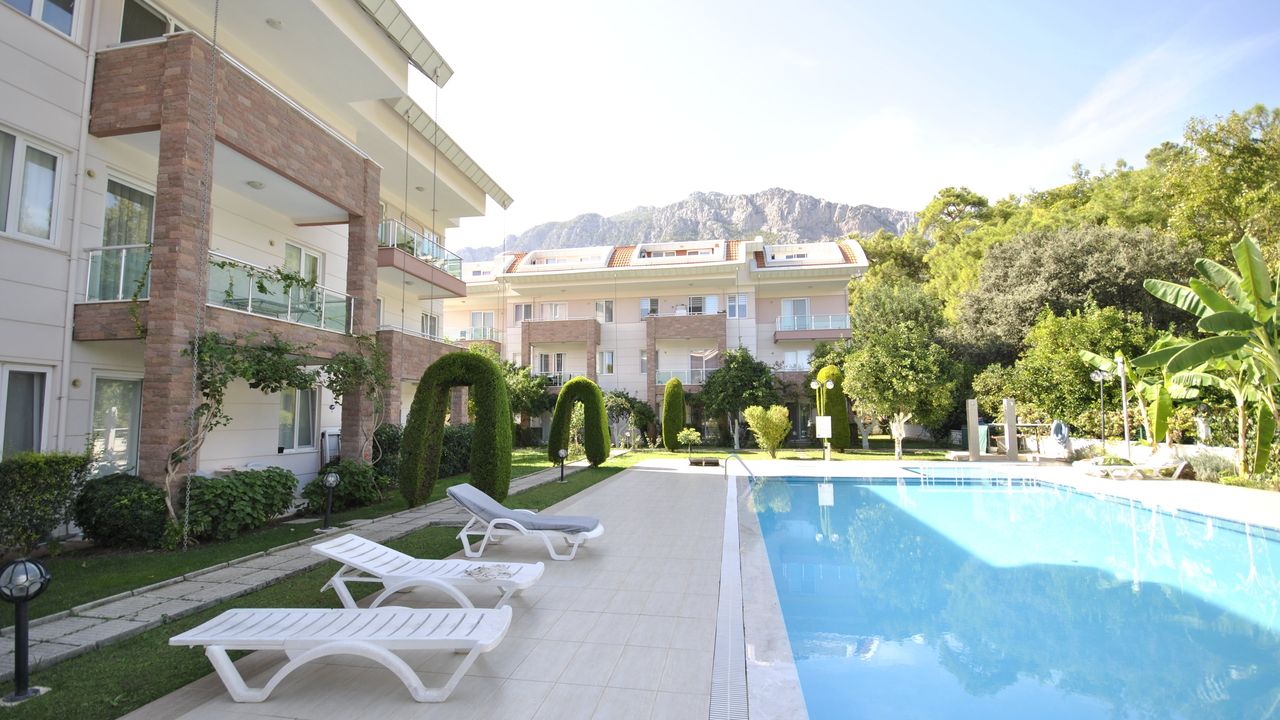 2691(ASL264)Анталья Кемер Арсланбучак продажа квартиры планировки 1+1 расположенной в одном из самых красивых районов курортного города, у подножья гор Торос. Квартира на продажу находится в пешей доступности ко всем социально необходимым объектам.На территории жилого комплекса, в котором расположена квартира на продажу, есть бассейн, сауна, фитнес зал, зона для барбекю, беседка, охрана и камеры видеонаблюдения 24/7, интернет и парковочные места. Также на территории жилого комплекса растут различные плодоносящие деревья. Из окон квартиры открывается вид на горы и апельсиновый сад.
