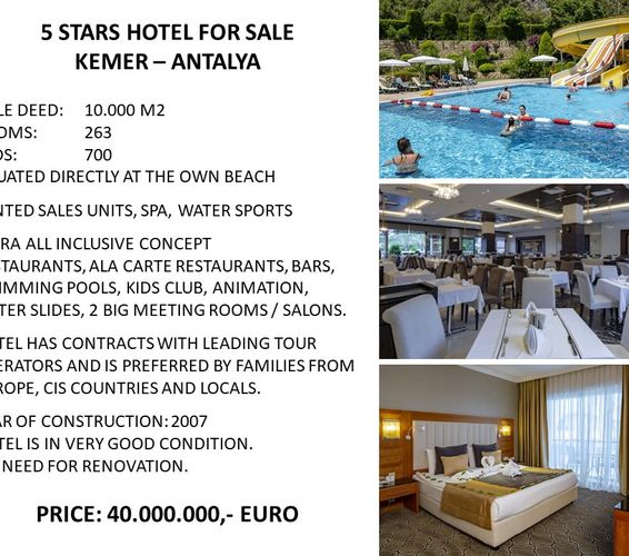 Турция. ПРОДАЕТСЯ 5-ЗВЕЗДОЧНЫЙ ОТЕЛЬ КЕМЕР - АНТАЛИЯ.