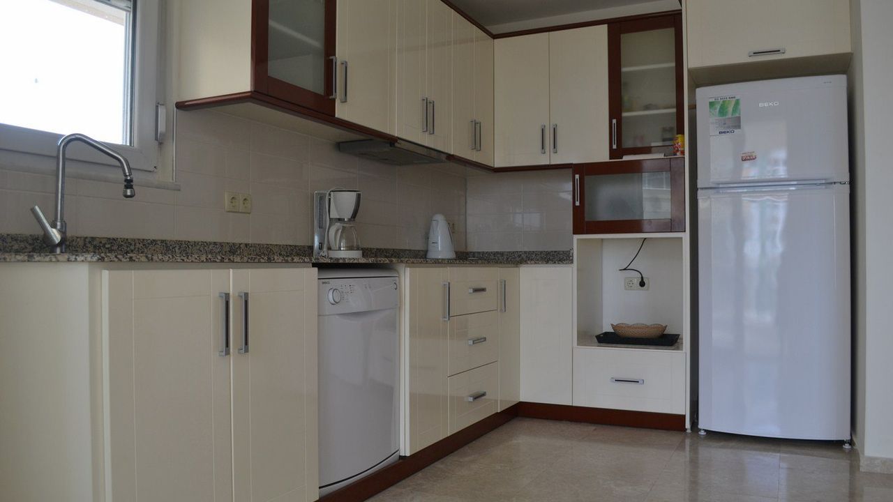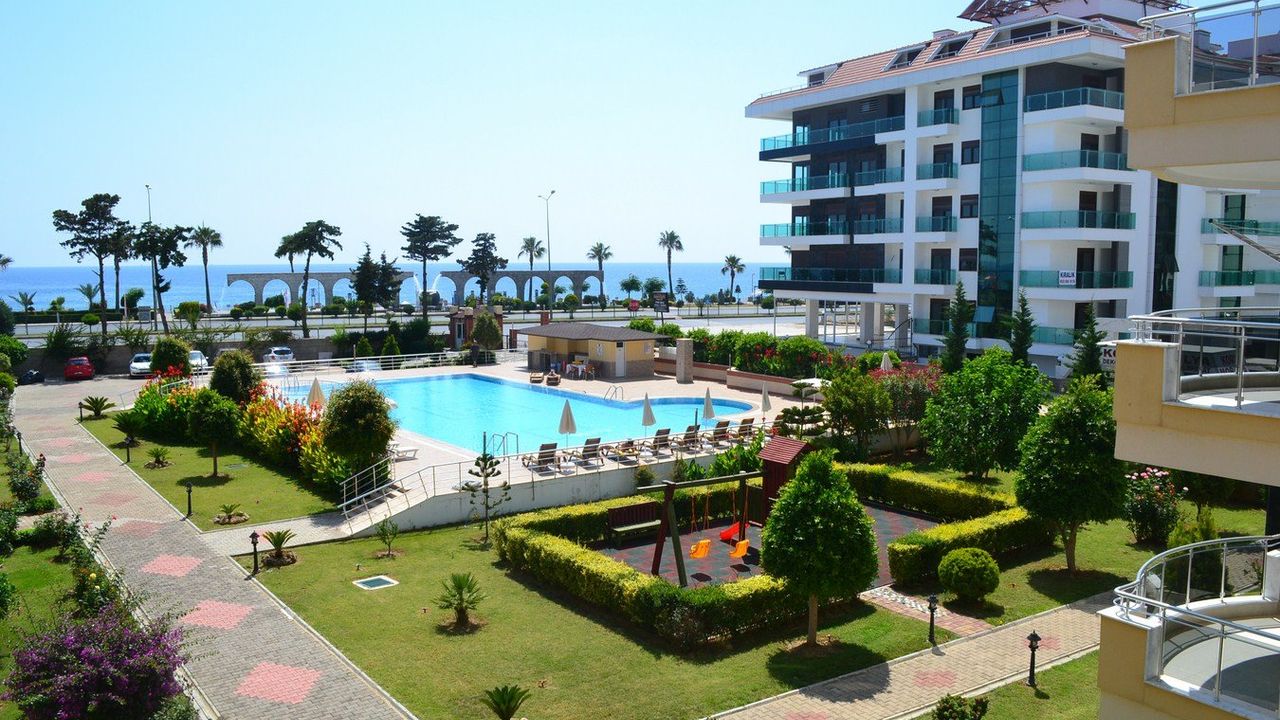 Продажа квартира класса люкс на берегу моря, в резиденции из 6 жилых блоков. Общая площадь квартиры - 125 кв.м, находится на 2-м этаже в 5 этажного дома (построен в 2009 году), ориентирована на юг-запад-север. 2 спальни, гостиная, кухня открытого типа, 2 ванные комнаты, 2 балкона, полы - мрамор, ПВХ окна, встроенные жалюзи, спот светильники в гостиной, стальная входная дверь, внутренние двери - американская панель. Квартира продается полностью меблированной.