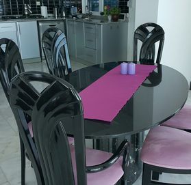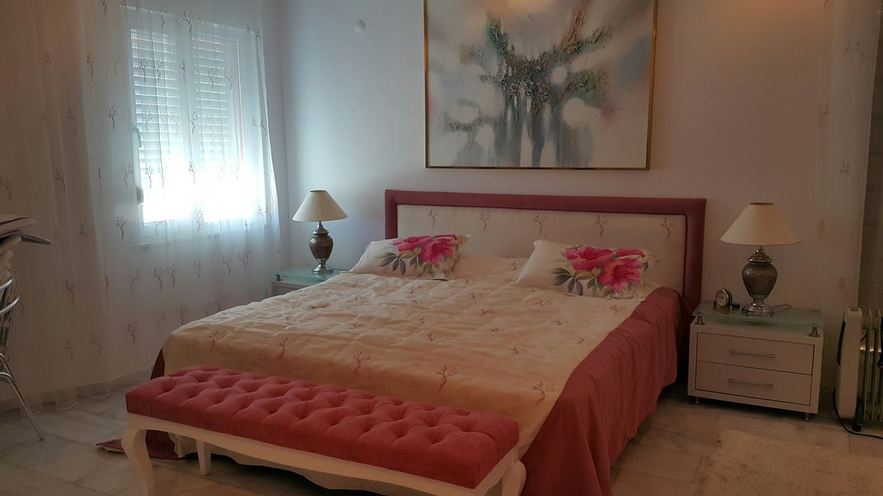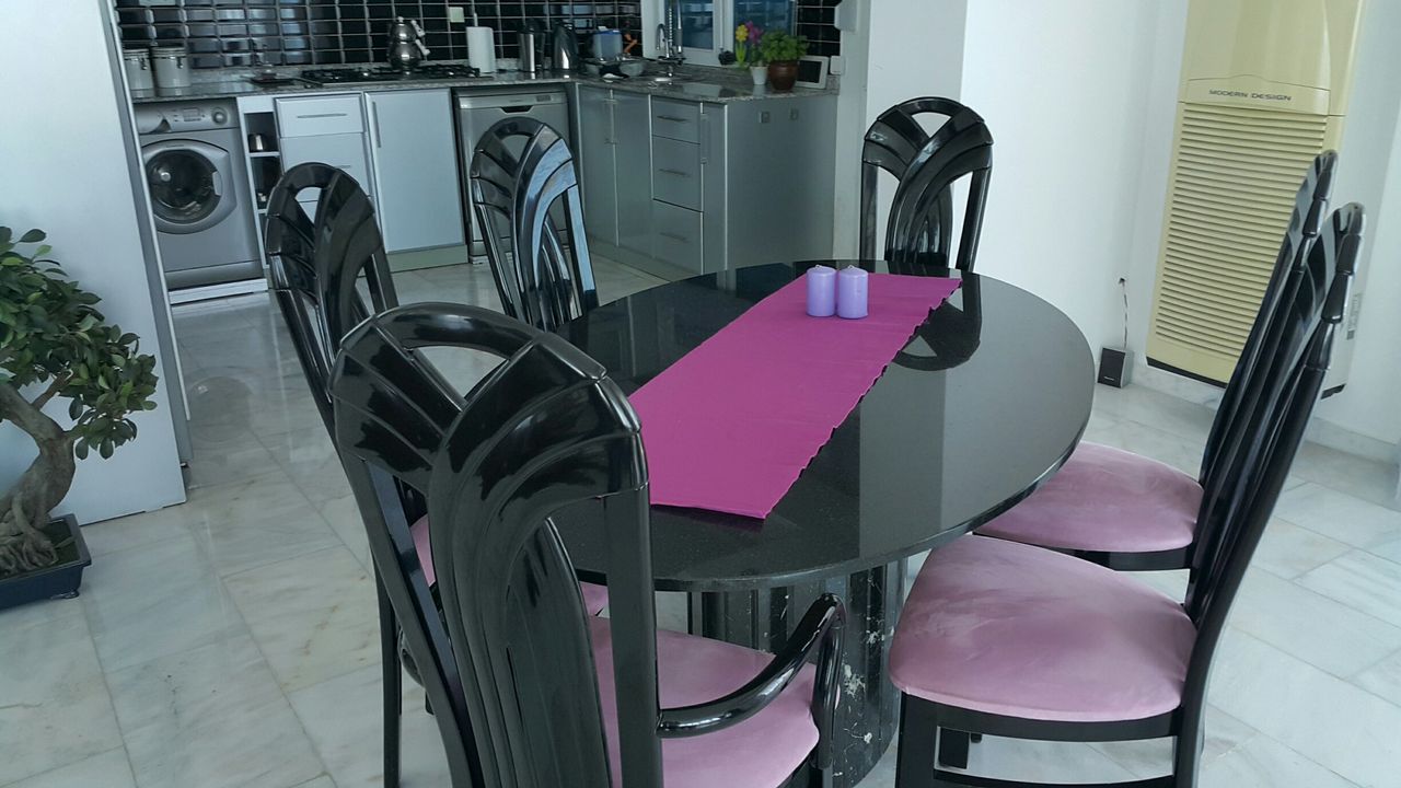Стальная входная дверь, Американские Межкомнатные двери, керамические полы, стены и потолки выкрашны атласной краски, кухня американского типа и кухонные шкафы с мраморной столещницыв, ПВХ окна с двойным стеклопакетом, ТВ, телефон, Интернет, электрические розетки в каждой комнатой ,электрический нагреватель воды-бойлер, домофон, Душевая и WC комнаты типа Hilton, бытовая техника.