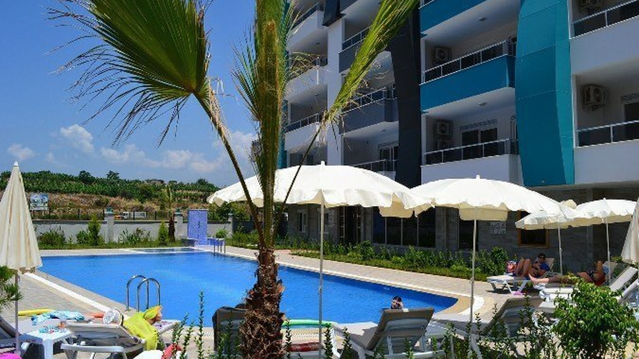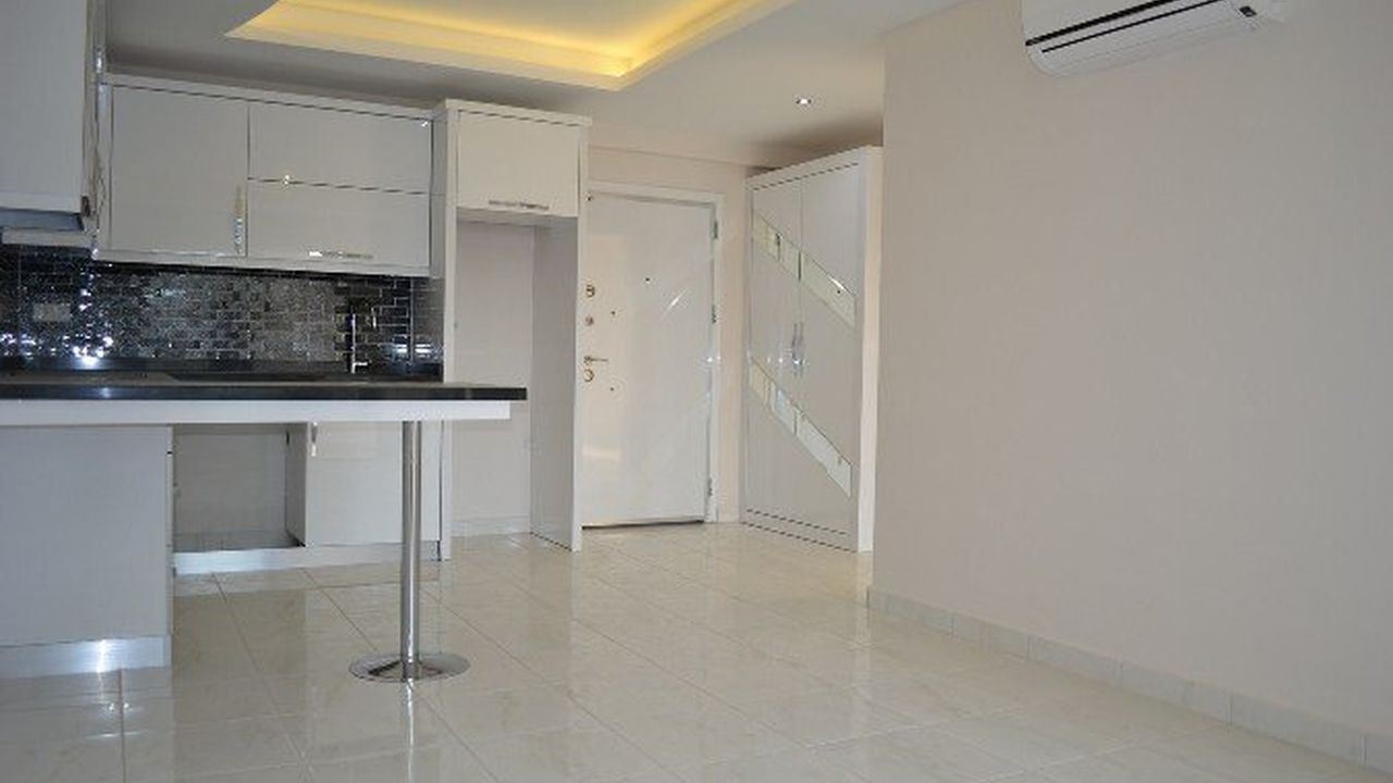 Квартира расположена на расстоянии 650 метров от моря, на 2м этаже 12этажного здания 2015 года постройки. Общая площадь квартиры – 67 кв.м., ориентирована на юг, имеет вид на бассейн и городские кварталы. Здесь имеется прихожая, гостиная с кухней открытого типа, 1 санузел, 1 балкон. Покрытие пола – кафельная плитка, окна – ПВХ, встроенный кухонный гарнитур белого цвета с гранитной столешницей, 2 кондиционера воздуха, бытовая техника, стальная входная дверь, домофон.