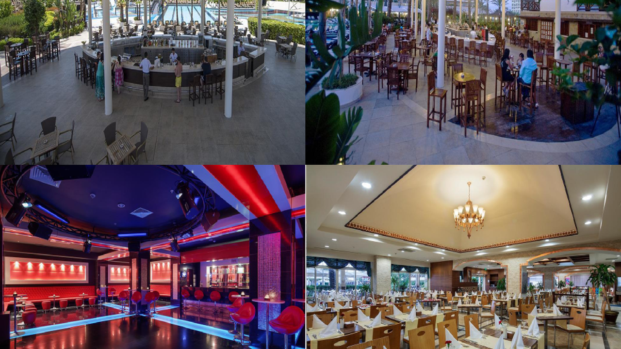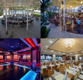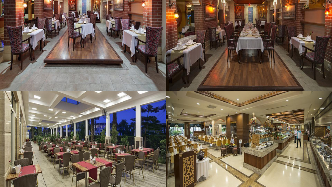 В объекте есть 4 ресторана с обслуживанием по меню, 5 ресторанов на открытом воздухе и 2 ресторана в помещении.