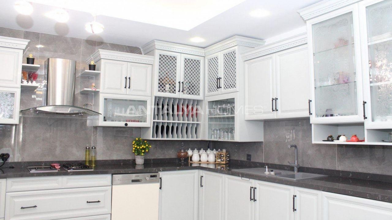 Шестикомнатная вилла состоит из гостиной, четырех ванных комнат, трех балконов и трех кухонь. Вилла оснащена турецкой баней, сауной, частным лифтом, кухонной техникой, специальной системой отопления производства, влажным полом и ламинированным полом. ЭСБ-0125