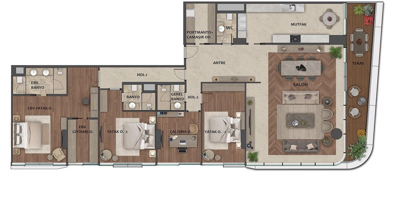 Из апартаментов открывается великолепный панорамный вид на Босфор с собственной террасы. Жители могут насладиться эксклюзивным доступом к улице с известными брендами и изысканными ресторанами, что значительно повышает уровень городской жизни. Прямой туннель соединяет комплекс с пляжем, позволяя вам наслаждаться прибрежным образом жизни прямо у вашего порога. Современная система Smart Home добавляет удобства, улучшая ваше ежедневное проживание.