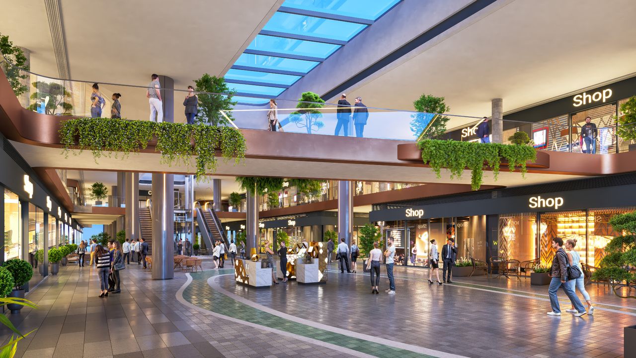 Двухэтажный торговый центр с 131 коммерческим помещением.