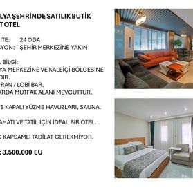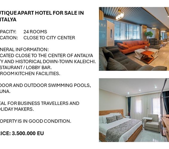 Турция. ПРОДАЕТСЯ ЭЛИТНЫЙ МИНИ-ОТЕЛЬ В АНТАЛИИ