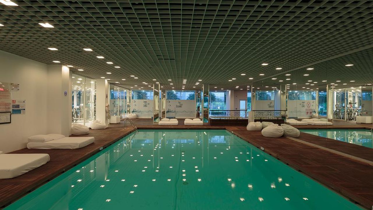 Открытый бассейн (54 х 9 м, с подогревом) и крытый бассейн (13,5 х 6 м, с подогревом),