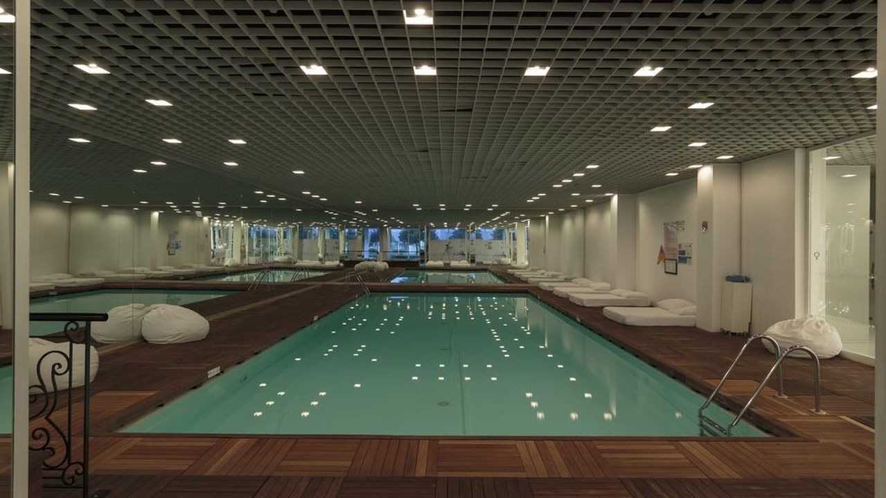 Открытый бассейн (54 х 9 м, с подогревом) и крытый бассейн (13,5 х 6 м, с подогревом),