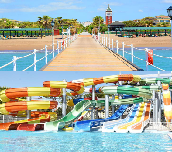 Отель построен на площади 3200 м2 и является новейшим аквапарком в регионе, состоящим из 7 взрослых и 5 детских горок.