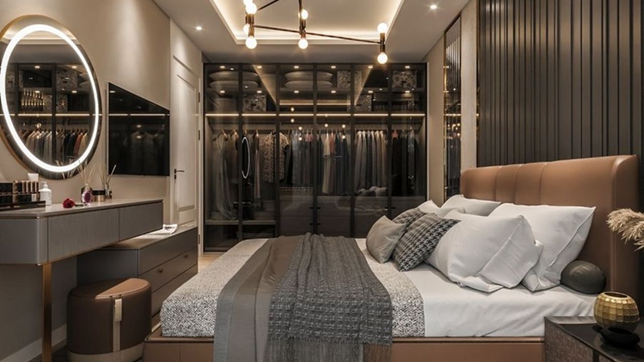 Апартаменты оборудованы подвесными потолками, кухонными шкафами, гардеробными. Ванные комнаты оснащены первоклассной сантехникой, душевыми кабинами высокого качества и шкафами для ванной комнаты.