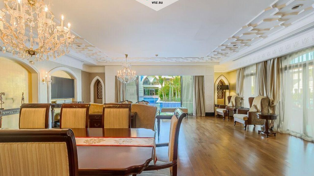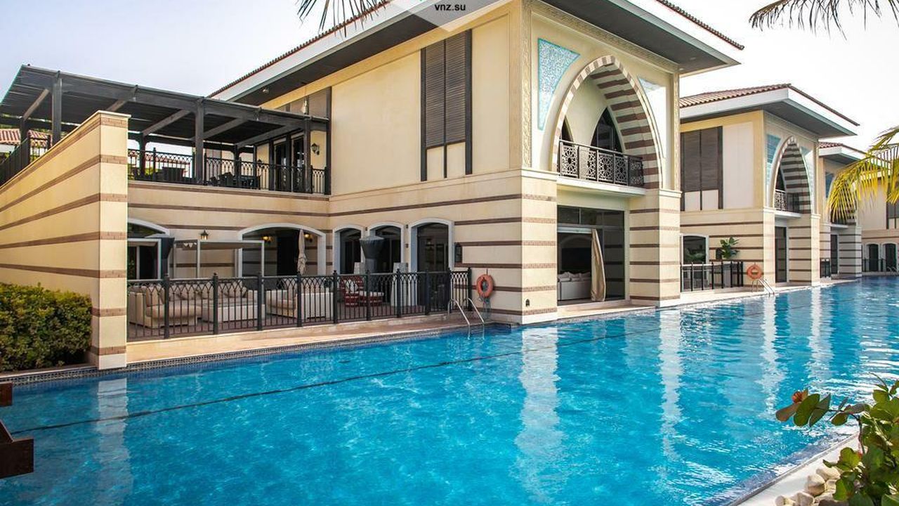 Вилла расположена на берегу Аравийского залива в великолепном лагуне на Пальме Джумейра с тропическим садом, с прямым выходом на 250-метровый бассейн и частный пляж.