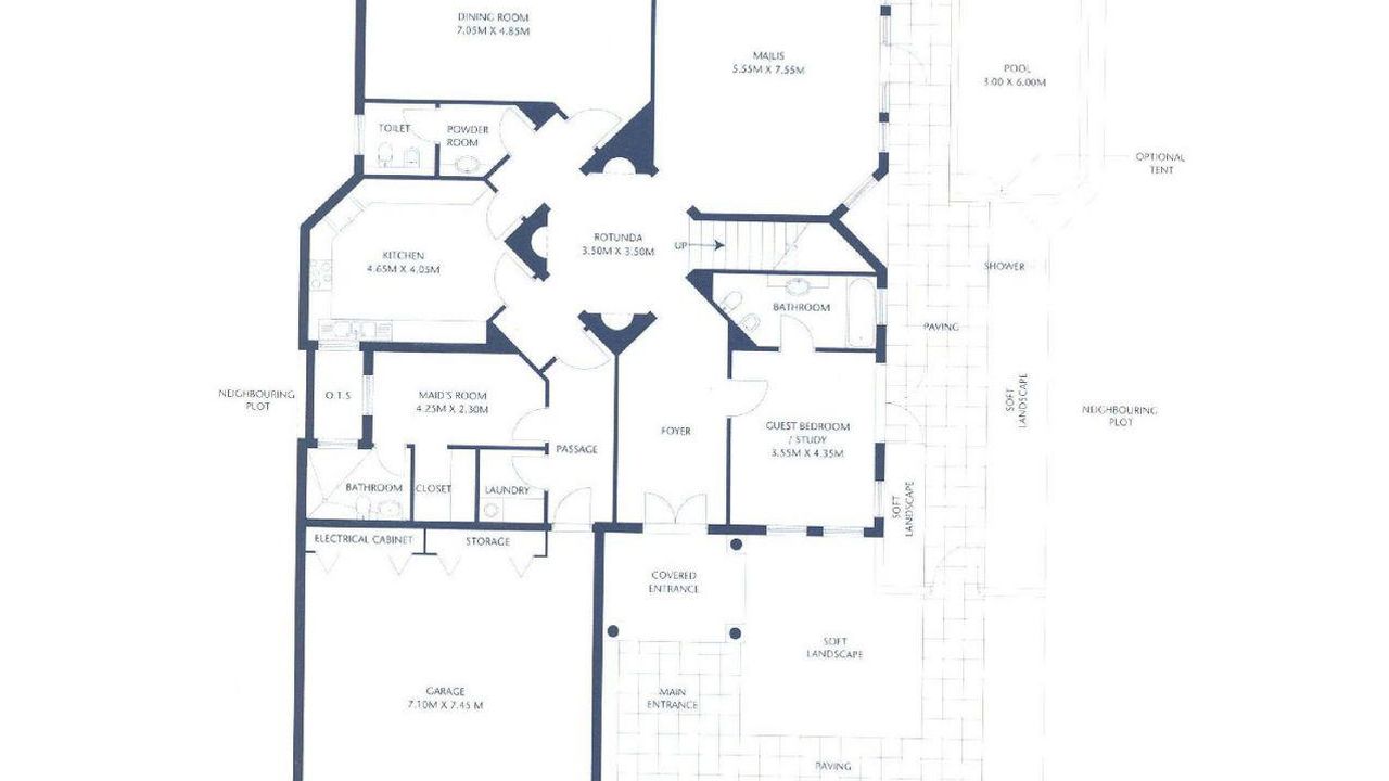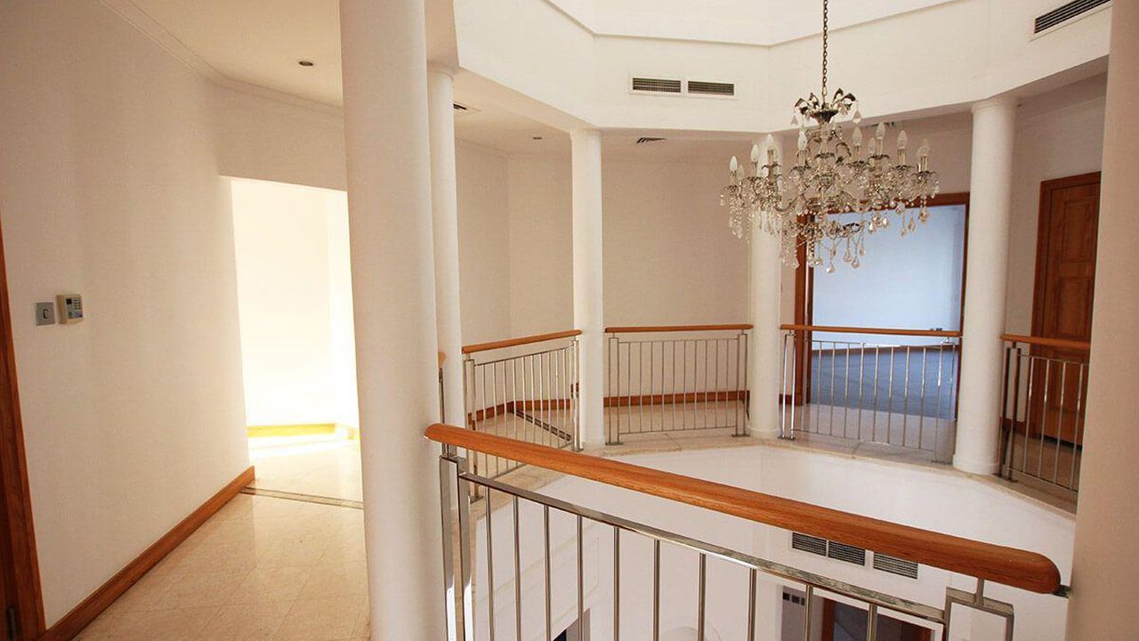 Вилла состоит из 2 этажей. На первом этаже есть кухня, комната горничной с ванной, гостевая комната с ванной, гостиная и мажлис для встречи гостей. На втором этаже есть еще 3 спальни с ванными комнатами, а также балкон. В дворе есть бассейн 3x6 метров. Есть также гараж на 2 машины.